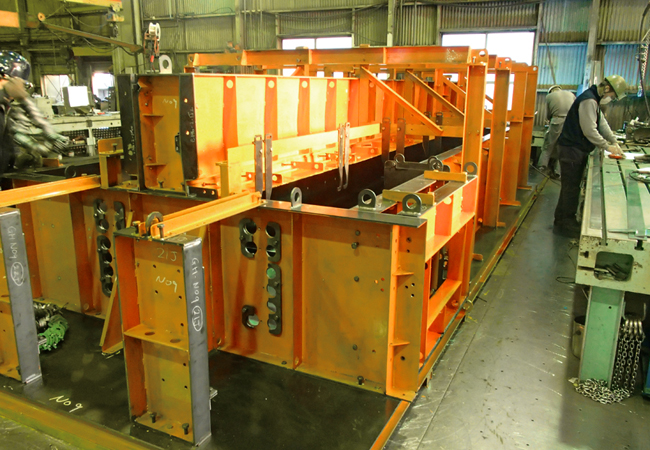 近年増えてきました、仕口一体大梁型枠です。逆梁平打ちになります。